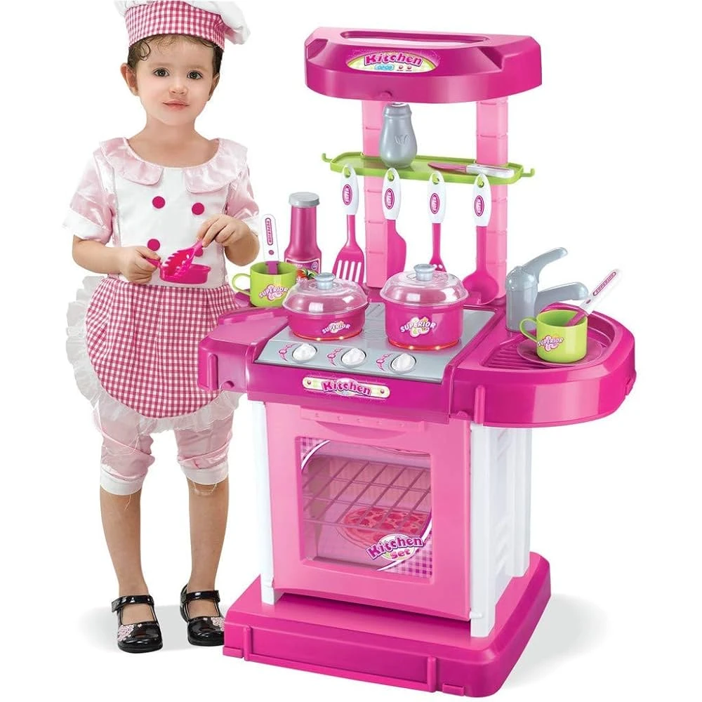 يمكنكِ طهي وجباتكِ الخاصة باستخدام الأدوات والمكونات الموجودة في مجموعة المطبخ المرفقة. إنها لعبة رائعة تُقدم كهدية للأطفال، كما يمكنكِ تعزيز التواصل بينكِ وبين أطفالكِ من خلال اللعب معًا.