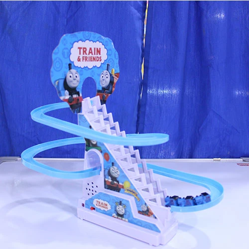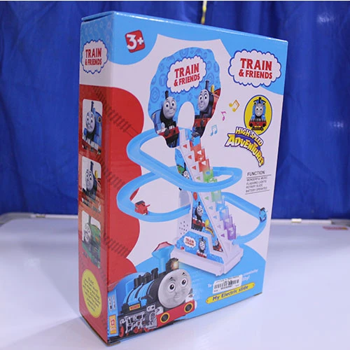 سكة قطار توماس الأوتوماتيكية! هذه اللعبة الممتعة تأخذك في سباق حلزوني تصاعدي وهابط، حيث يصعد القطار توماس عبر الدرج آلياً ليعود وينزلق بسرعة على المسار الدائري. تضمن هذه اللعبة ساعات من التفاعل والمشاهدة المبهجة، وهي مثالية لجميع محبي القطار الأزرق المحبوب!