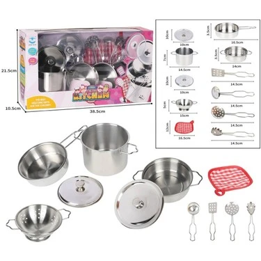 حجم رائع للأطفال - جميع الأواني والأدوات صغيرة الحجم لتناسب أيدي الأطفال، وتناسب مجموعة مطبخ اللعب (يبلغ قطر الأواني ٤ بوصات تقريبًا، وطول الأدوات ٦ بوصات تقريبًا).