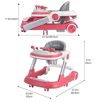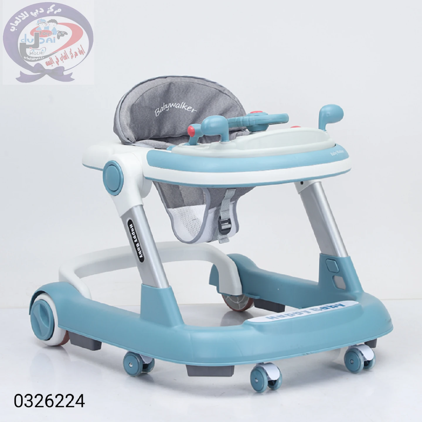 مشاية أطفال 2 في 1 من دبي للالعاب، مشاية دفع للأطفال الصغار مع صينية طعام قابلة للإزالة وصينية موسيقى (بدون بطارية)، مشاية أنشطة قابلة للطي للأولاد والبنات من عمر 6 إلى 18 شهرًا - أزرق