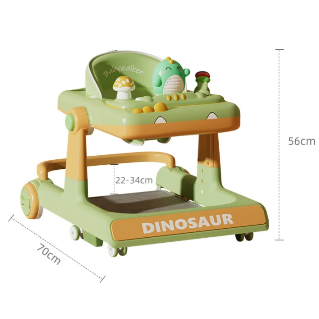 مشاية أطفال دينو قابلة للطي متعددة الوظائف مضادة للانقلاب يمكن الجلوس عليها مع الموسيقى عربة أطفال للمشي