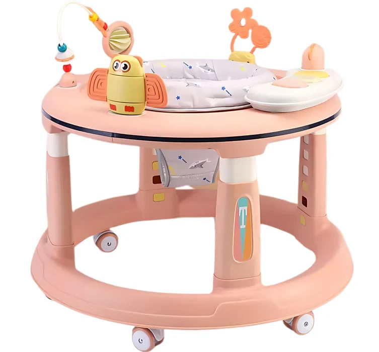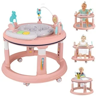 مشاية أطفال 3 في 1 مع 5 ارتفاعات قابلة للتعديل، مشايات أطفال ومركز أنشطة للأولاد والبنات من عمر 6 إلى 12 شهرًا، تتميز بمقعد دوار 360 درجة، موسيقى، ألعاب قابلة للفصل، وسادة قدم مرتدة